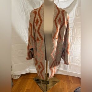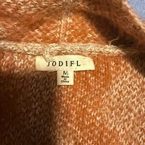 JODIFL Orange and Tan Cardigan Sweater with Geometric Pattern