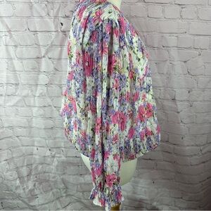 JODIFL Pink and Purple Relaxed Blouse with 3/4 Sleeves smocked pleats sz large