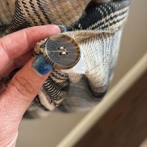Jodifl Plaid shacket with button-up front. Features stylish black, gray, and cream patterns. Great cozy classic fall piece! Like new! Jodifl is a great boutique brand.