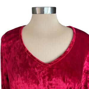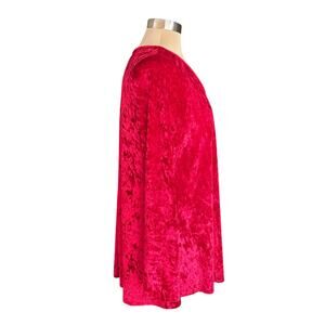 JODIFL Red Velvet Swing Tunic Top MEDIUM Christmas Valentines Glam Date Night. V-neck. Long sleeves. Flattering cut. Slightly longer in back. Red crushed velvet perfect for winter events. Great for casual wear as well. In excellent preowned condition. Size tag missing. SEE MEASUREMENTS BELOW. Fabric content tag missing.