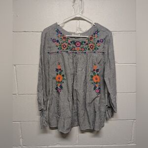 JODIFL (Small) Embroidered Gray Top with Floral Accents Boho Hippie