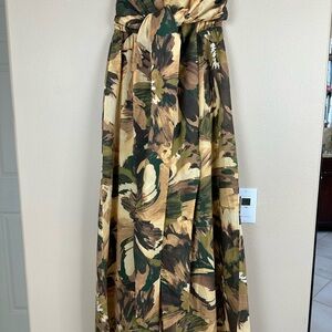 Chic strapless jumpsuit with bold floral design. Perfect blend of style and comfort.