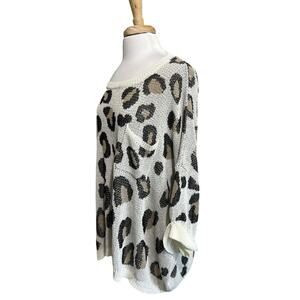 JODIFL Womens L Oversized Pullover Slouch Sweater Leopard Print Half Sleeve NEW