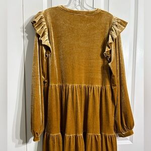 JODIFL Women's Velvet Gold Long Sleeve Short Dress Size L