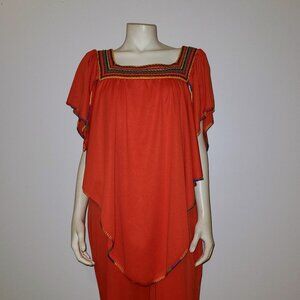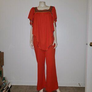 Channel your inner '70s goddess with this spectacular Vintage Jody of California one-piece jumpsuit! This outfit is a true showstopper, featuring a rich, bright orange hue and a comfortable, flowing silhouette.