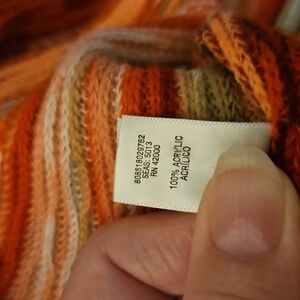 Add a pop of color to your outfit with this stylish striped scarf. Featuring vibrant orange hues, it's perfect for any occasion.