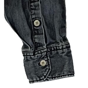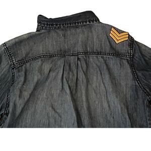 JOE FRESH WOMENS DENIM BUTTON DOWN SHIRT TOP M PATCHES RETRO CASUAL