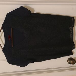 JOE FRESH Women's Navy Blue Short Sleeve Laced Front Tee - Size Large