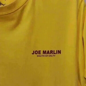 JOE MARLIN UNWIND Yellow Marlin SALTY LOGO Short Sleeve Cotton T-SHIRT MENS LG