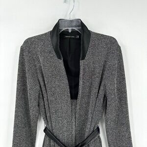 JOEFFER CAOK jacket blazer belted pockets herringbone black knit stretch S