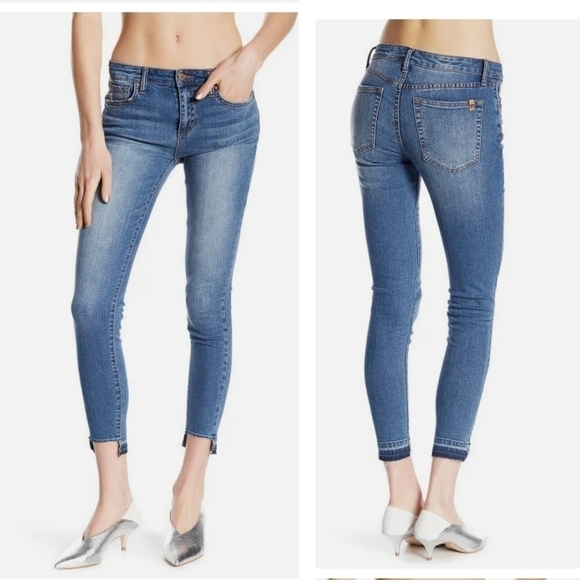 - Mid rise release hem ankle skinny jean