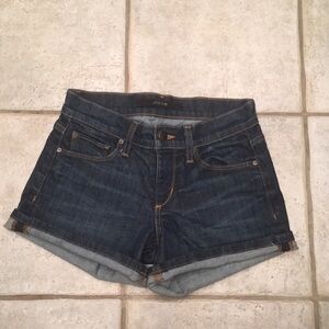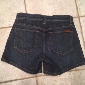 Joe’s Denim Shorts. They do have stretch to them. 5 pockets. These are basic Jean Shorts. Doesn’t everybody need a great pair of denim shorts? In great condition. I have showed them cuffed and not. I wore them both ways. They are definitely long enough. Color is a darker wash. Can be dressy or casual. Ask any questions. I am happy to answer. Smoke free home.