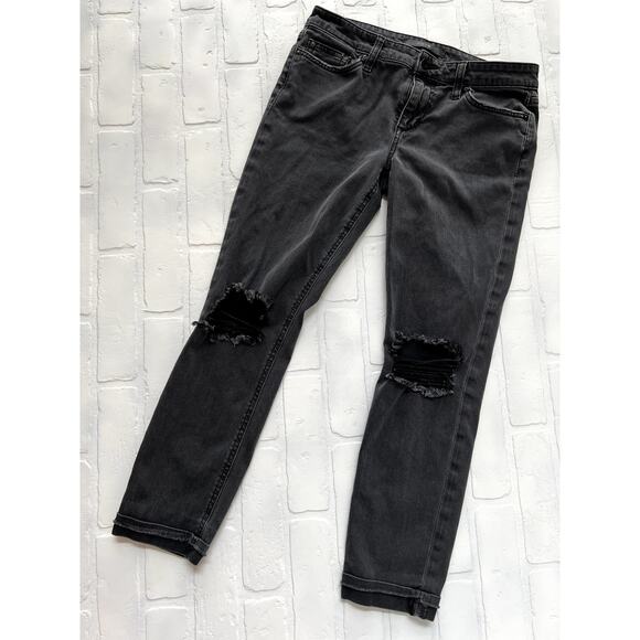 JOE'S JJ Markie Crop Skinnie Crop Black Distressed Knee Jeans - sz 28