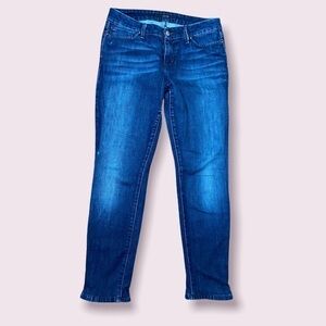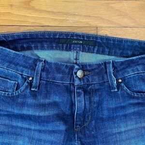 These Joe's Jeans are a nice skinny jean. They have been altered for a shorter/cropped fit, only changing it by about an inch. These jeans are a nice medium blue wash with a button and zip closure. These jeans would be great for casual Friday, as they do not have any rips or distressing in them. These are the Chelsea fit with a more slim, skinny style. They are size 27 waist.