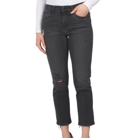 JOE'S Jeans Mid Rise Straight Cropped BLACK Jeans With Raw Cuffs SIZE 26
