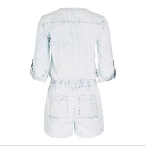 This lightweight denim Joe’s Jeans romper features button cuffs for the sleeves and a drawstring waist, while distressing offers vintage appeal. Wear it with sneakers or sandals for an easy warm-weather ensemble.