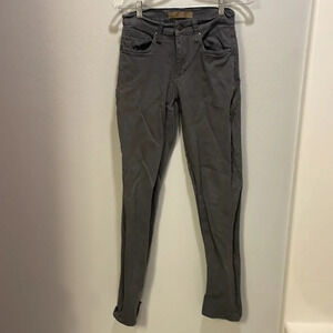 Joes Jeans woman’s jeans. The color is castle rock. The jeans are cute and in good condition. The color is a green and grey mixed together.