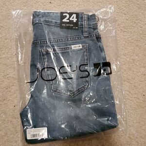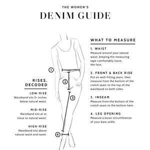 - Design Details: Bent loops, whiskering and fading details, Frayed hem, and classic five-pocket styling.