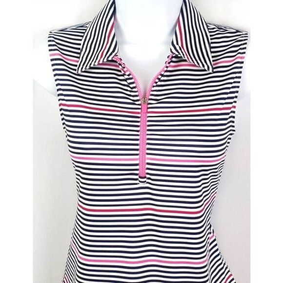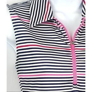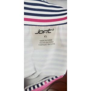 Like new Jofit golf top with navy blue and pink stripes and pink front zipper. In excellent condition.