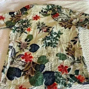 JOGAL Hawaiian Shirt Aloha Allover Floral Print Cotton Lightweight Sz L
