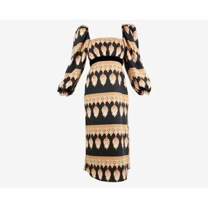 Johanna Ortiz's midi dress is cut from crisp cotton-poplin certified by the Better Cotton Initiative, meaning it's thoughtfully grown and sourced. The geometric print is inspired by antique Indian block prints, while the squared neckline and voluminous sleeves create a romantic feel. Style it with sandals and a tote.
