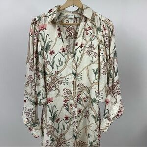 ❤️Lovely JOHANNA ORTIZ x H&M Linen Shirt Floral Print Dolman Sleeve Dress