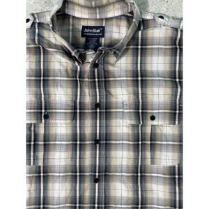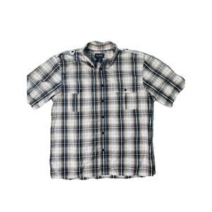 JOHN BLAIR PLAID MENS BUTTON DOWN SHORT SLEEVE SHIRT L