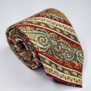 JOHN COMFORT Men's 100% Silk Necktie ENGLAND Designer Paisley Red/Multi EUC