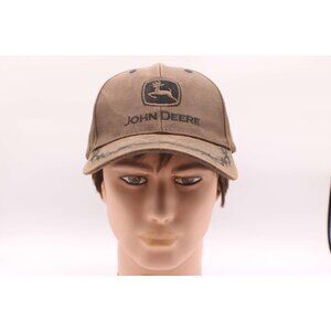 JOHN DEERE Hat Cap Baseball Trucker Embroidered Buck Logo Barbed Wire Brown