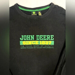JOHN DEERE Men’s Long Sleeve Logo Embroidered Black Tee Shirt Farm Tractor Size Large