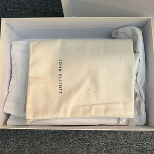 JOHN ELLIOTT "Haze" Moon Grey Low-Top Slip-On Sneakers in size 41. I purchased these from Ssense in 2022 and never wore them. I typically wear size 9.5 in most sneakers, which works out to size 41 for John Elliott (JE sneakers tend to run a bit large). I love the "Haze" design and own a few pairs in canvas, but I have a narrow foot and the suede version feel a bit loose on me unless I wear a thicker sock. Aside from this, they're awesome! Item comes from a smoke-free home.