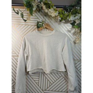 JOHN ELLIOTT Women's Cropped Sweatshirt Off White Long Sleeve Size S STAIN