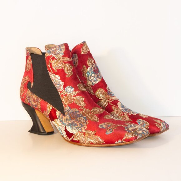 maximalist chinese style floral red slip on boots