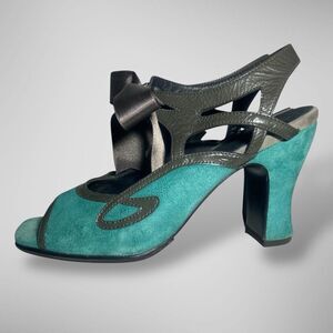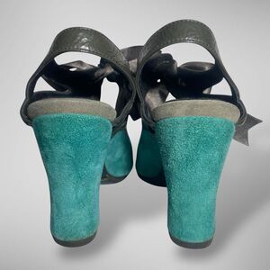 JOHN FLUEVOG Miracles Fatima Open toe Pump Heels Shoes Women Sz 7 Turquoise Grey