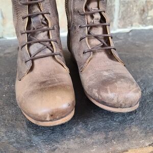 Awesome pair of John Fluevog Radio KCRW boots, women's size 6. Weathered Atlas leather with factory distressing/markings. Boots are in nearly new condition with light wear on outsole. Super trendy! Steampunk appeal! Retired, rare style!