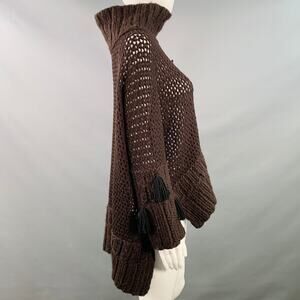 JOHN GALLIANO sweater in a brown wool blend knit featuring a chunky knit style, long sleeves with black tassel details, and turtleneck. Made in Italy.Good Pre-Owned Condition. Moderate pilling.Marked: MMeasurements:Shoulder: 17.5 in.Bust: 68 in.Sleeve: 20.5 in.Length: 25 in.