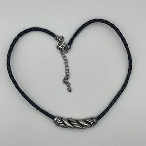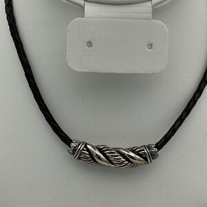 JOHN HARDY - Sterling Twisted Slider Pendant & Black Leather Necklace