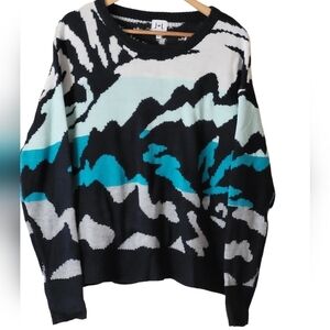 JOHN + JENN Deep Blue Abstract Pullover Sweater M