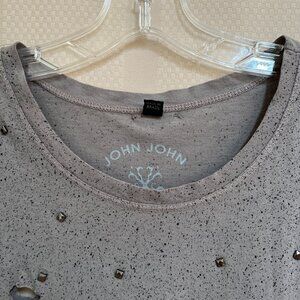JOHN JOHN Unisex Sleeveless Distressed Jeweled T Shirt Top Gray Sz M NWT