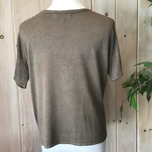 Great looking short sleeve rayon V neck with tie up waist pull over style.Soft and comfy by John + Jenn at Anthropologie Measures 21” armpit to armpit and 23” in length