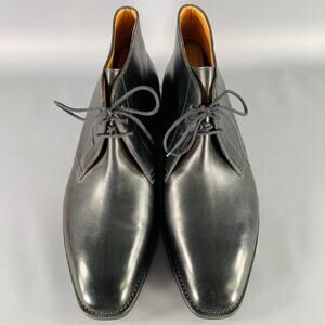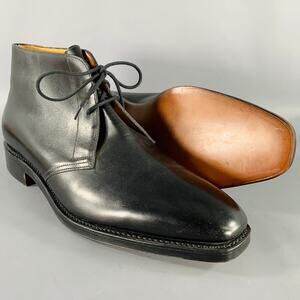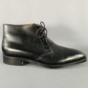 JOHN LOBB Size 10 Giono Black Leather Lace-Up Ankle Boots