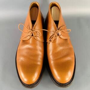 JOHN LOBB Size 8.5 Grove Brown Pebble Grain Leather Lace-Up Chukka Boots