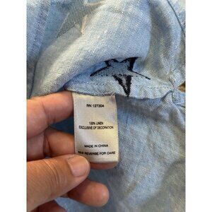 JOHN MARK 100% Linen Embroidered Navy Red White Stars Button Front Knot Boho S