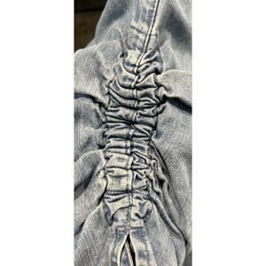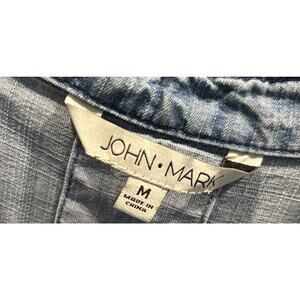 JOHN MARK Chambray Shift Dress Sz M Blue 1/2 Button Gathered Sleeve Pockets *C2