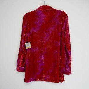 JOHN MARK Point Collar Button Front Tunic Top Size S Red Pink Tie Dye Velvet NEW