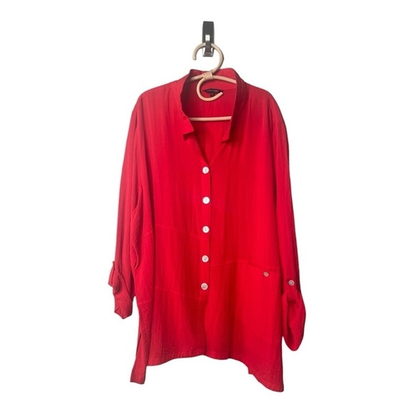 JOHN MARK Red Asymmetrical Stand Up Collar Tunic Shacket Womens Size 3X NEW