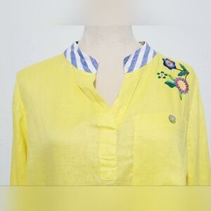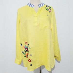 JOHN MARK Woman's 100% Linen Embroidered Floral Tunic Blouse Size Medium