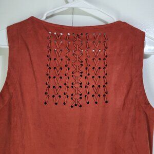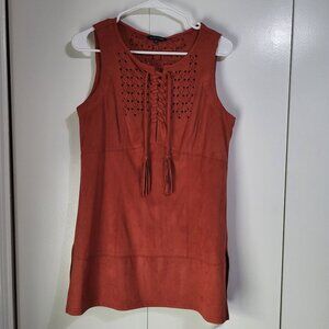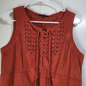 JOHN MARK Women's Small Faux Suede Sleeveless Top Tunic Orange Rust Tassel