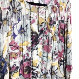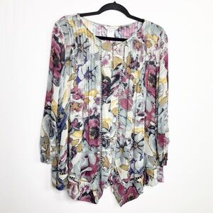 John mark sheer watercolor floral rose print blouse, with keyhole front.