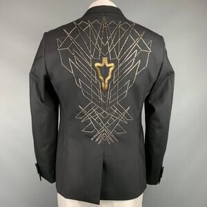 JOHN RICHMOND Size 42 Black Beaded Wool Peak Lapel Sport Coat